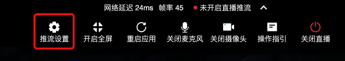 执行推流前,需要先在推流设置页面,填写推流地址。当需要推流至第三方直播平台时,可参考 推流至第三方平台设置。注意:如第三方平台通过推流地址加推流密钥的形式提供,需要将两段内容拼接成一条完整的推流地址。正在推流过程中,如需修改推流地址,需要停止推流再重新开启,将最新的推流设置生效。1. 单击上方的 推流设置,进入配置页。