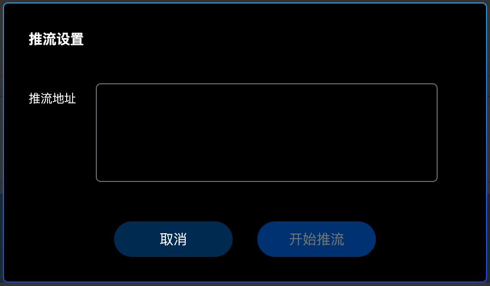 2. 在推流设置弹窗中填写推流地址,单击 开始推流 即可开始进行直播推流。