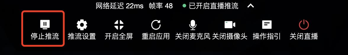 1. 开始推流后,若您需停止推流,可单击上方的 停止推流。
