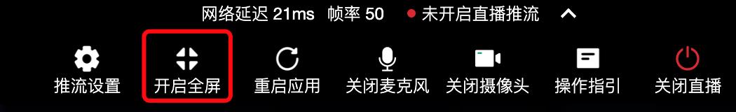网页开启主播端的显示区域较小,开启全屏设置后页面将占满屏幕,获取更好的视觉体验。长按 ESC 将退出全屏,或短按 ESC,在顶部的功能栏单击退出全屏。