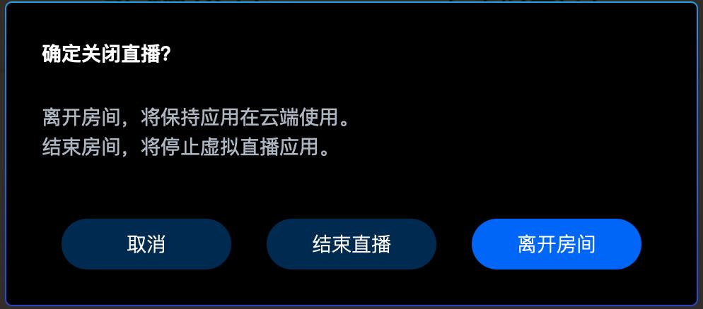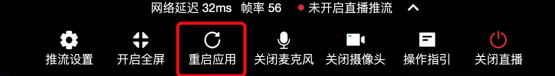 在极少情况下直播应用出现卡死、闪退的情况。此时通过单击 重启应用,可以在云端重新启动虚拟直播应用。