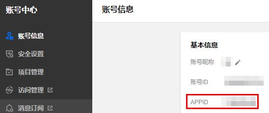 事件通知接收服务 Demo 的部署和运行过程需要使用到开发者的 API 密钥(即 SecretId 和 SecretKey)和 APPID。如果还未创建过密钥,请参见 创建密钥文档 生成新的 API 密钥;如果已创建过密钥,请参见 查看密钥文档 获取 API 密钥。在控制台 账号信息 页面可以查看 APPID,如下图所示:
