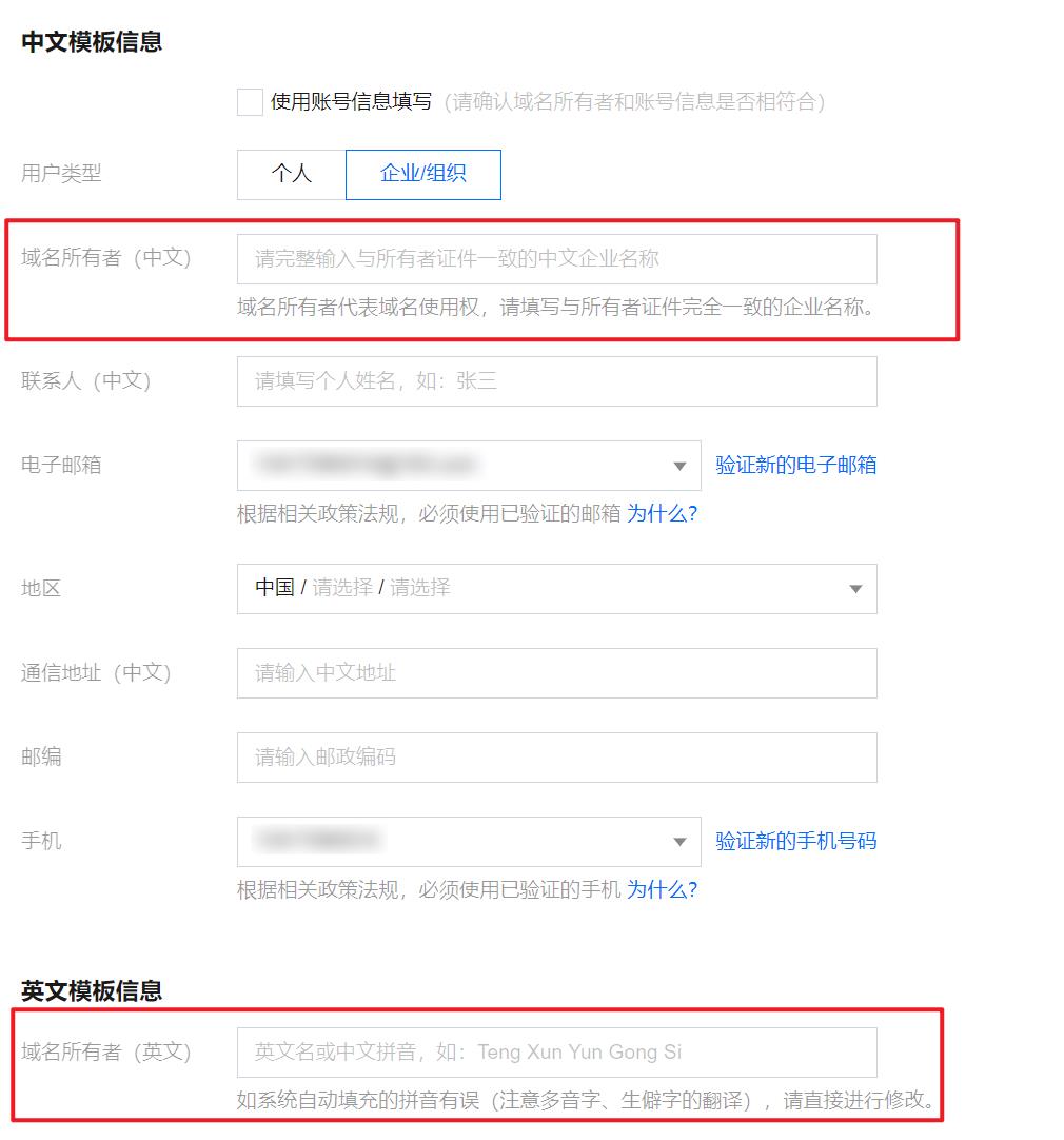 腾讯云域名注册注册者身份验证失败,请修改联系人选项为个人姓名后重新提交_AI解决方案_同尘科技